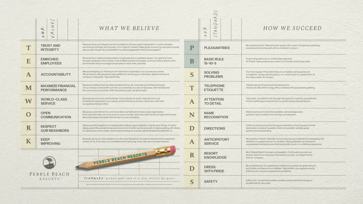 After almost two decades without a refresh, The Pebble Beach Company recognized the need for a new look at their brand identity. We created a holistic brand book for Pebble Beach Resorts and their four world-renowned golf courses, breathing new life into legacy assets. We also created a new tone of voice and design approach to bring one of golf's most iconic and beloved brands into the 21st century.